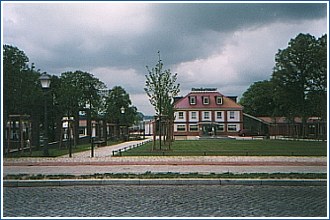 des Hauptgebäudes durch Brand zerstört. Wiederaufbau